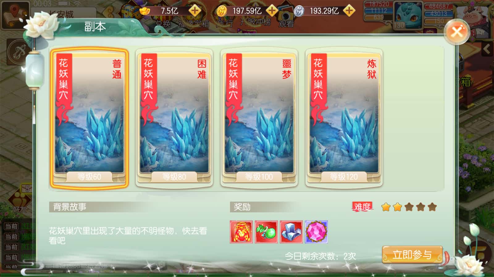 2: 花妖巢穴副本总共分为4个难度,普通-困难-噩梦-炼狱