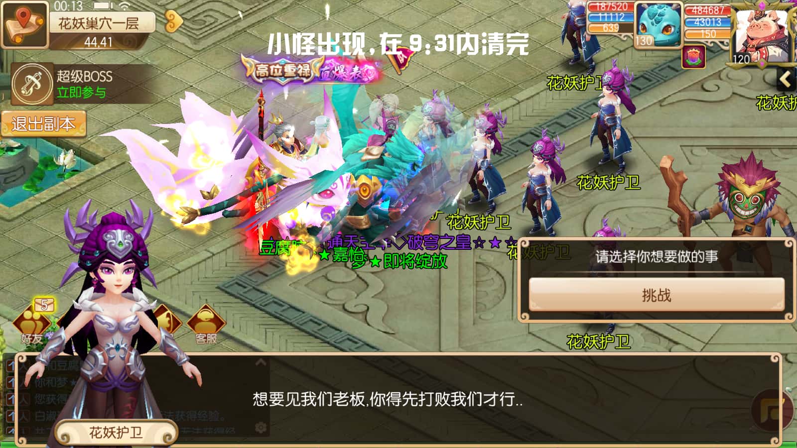 1: 花妖巢穴在长安城 副本闯关 NPC处参加,最低2人