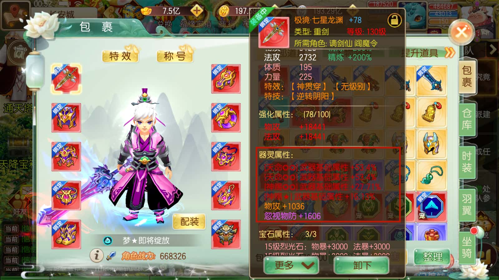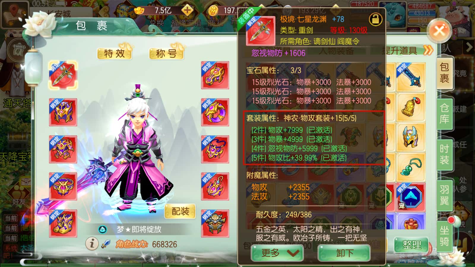 通过以上对 装备的各种加持 属性直接爆炸,打怪秒秒秒 爽翻天