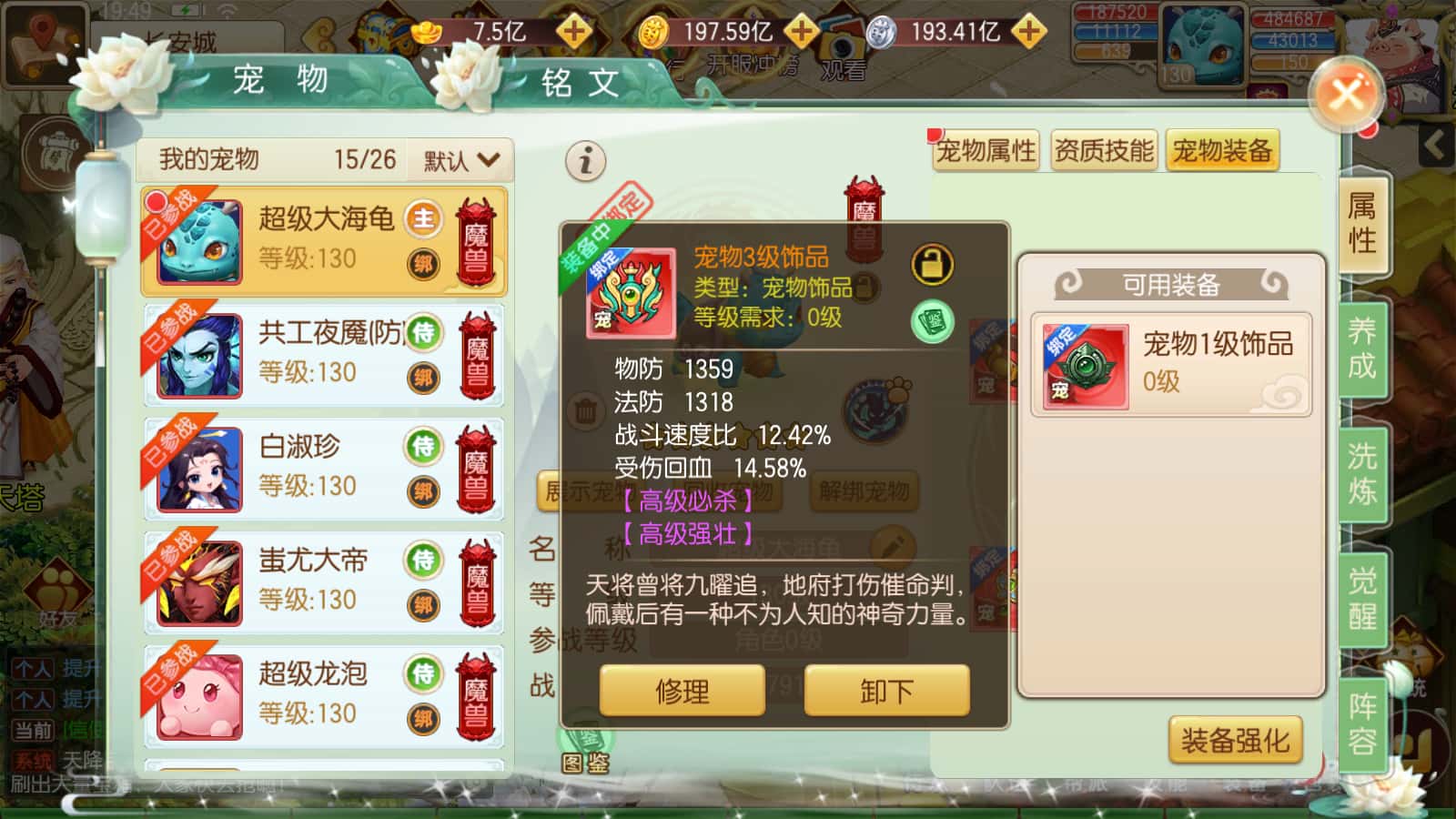 12: 宠物装备也可通过强化,洗炼 来增强属性, 强化最高30级,洗炼最多额外增加5条属性